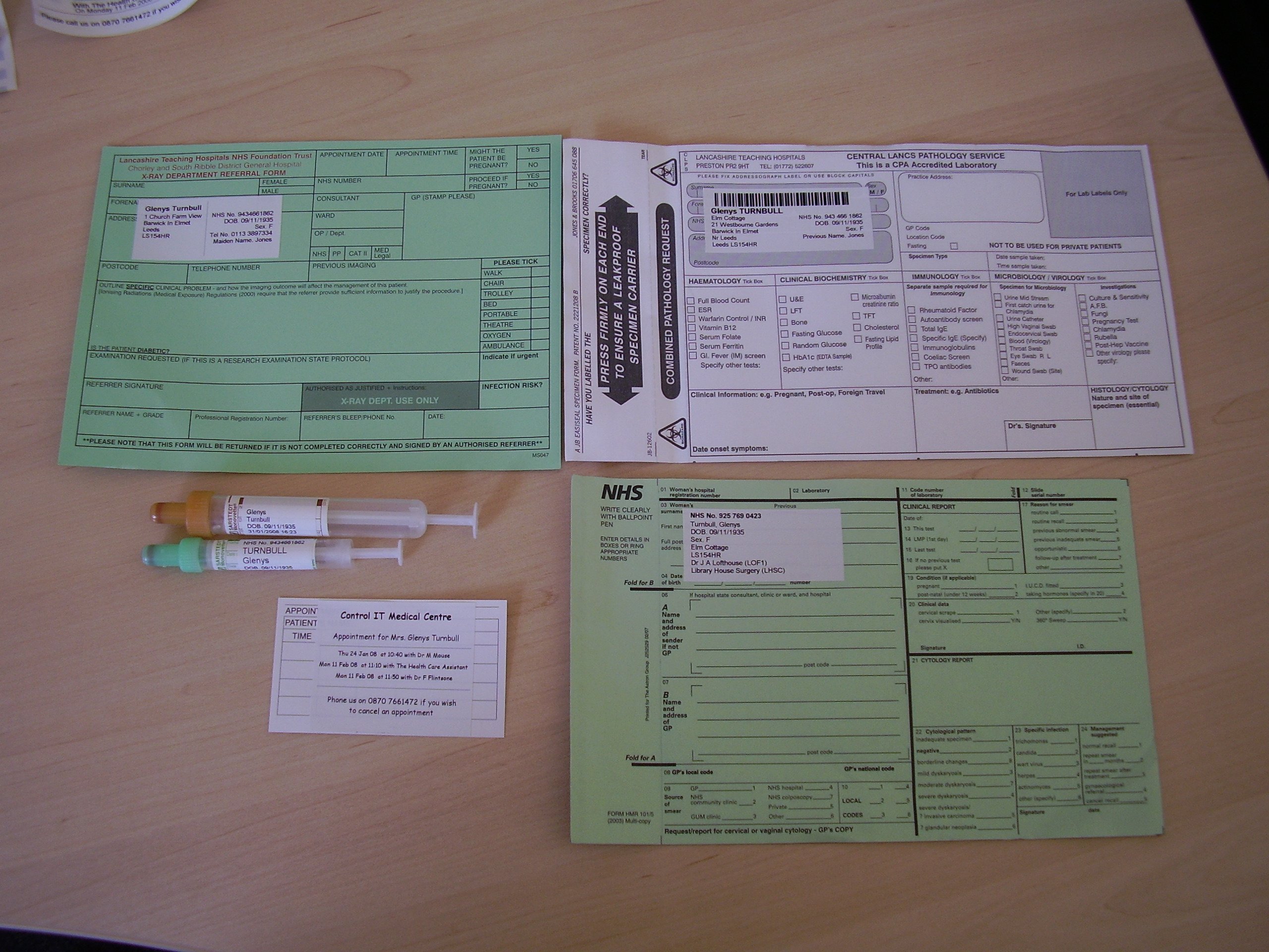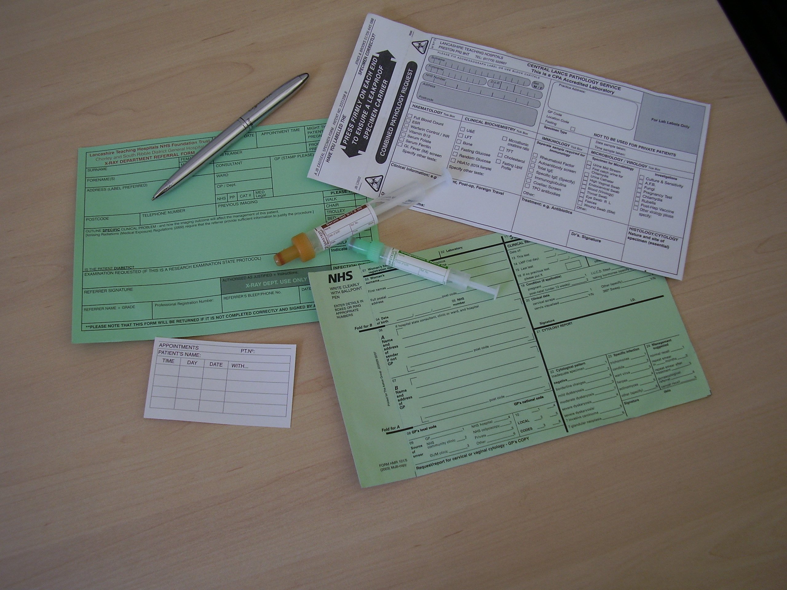 Fed up of filling in Pathology Forms, Bottles, Appointment Cards?