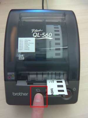 Please feed some label through the printer by pressing the Feed Button on the front.